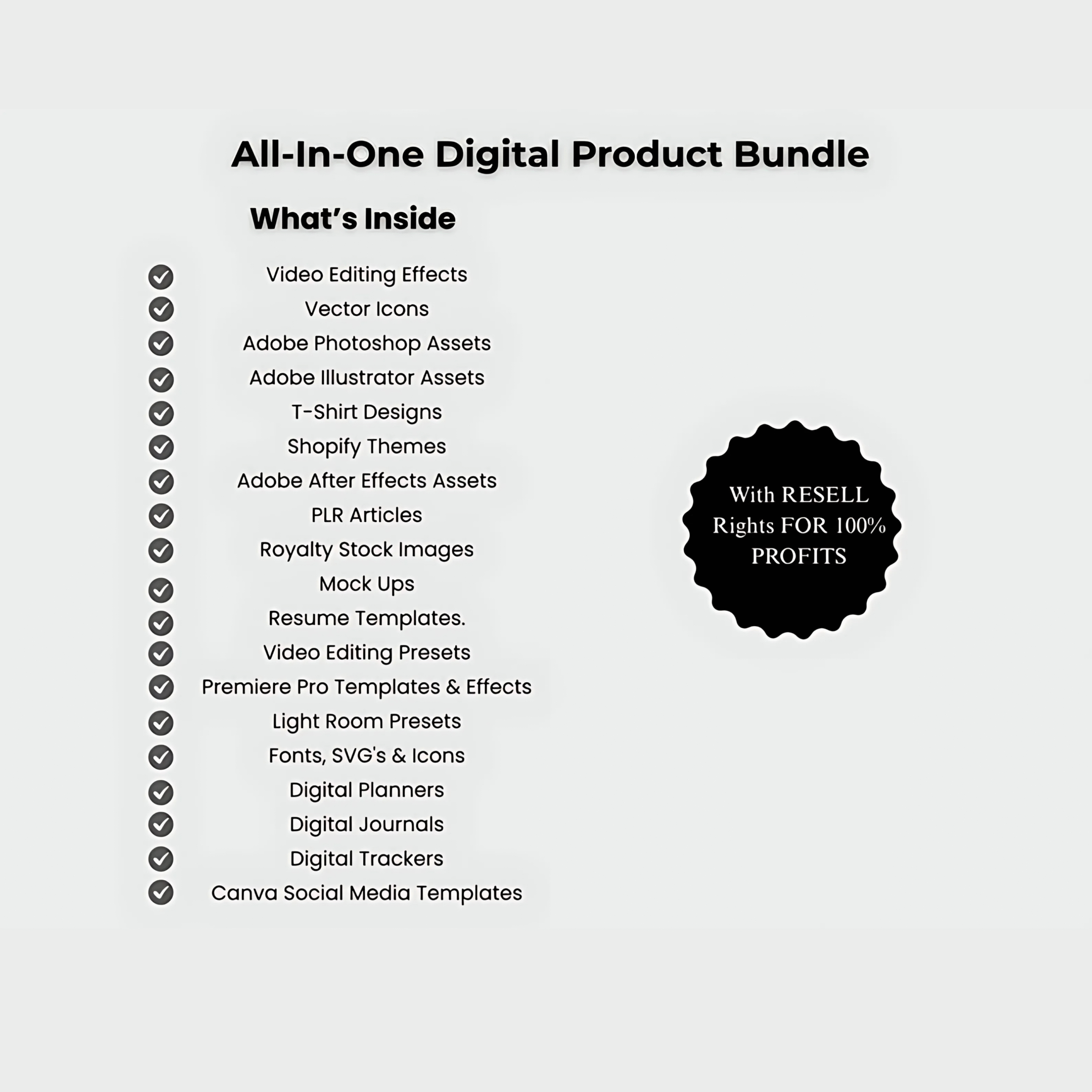 Everything in this bundle is ready for instant download and resale! That’s right—every digital product is yours to sell, empowering you to build a profitable online business with minimal effort.